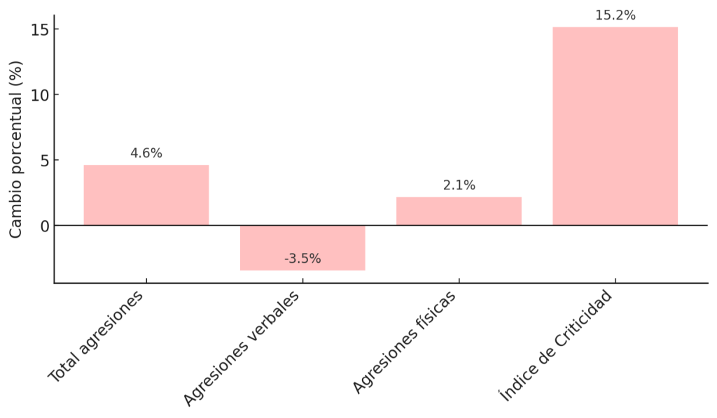 Si bien la forma en que se agrede al personal sanitario no ha cambiado drásticamente, la leve disminución de las agresiones verbales sugiere quizá un traslado a modalidades más físicas o de mayor criticidad.
