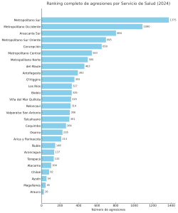 Ranking completo de agresiones por Servicio de Salud (2024)